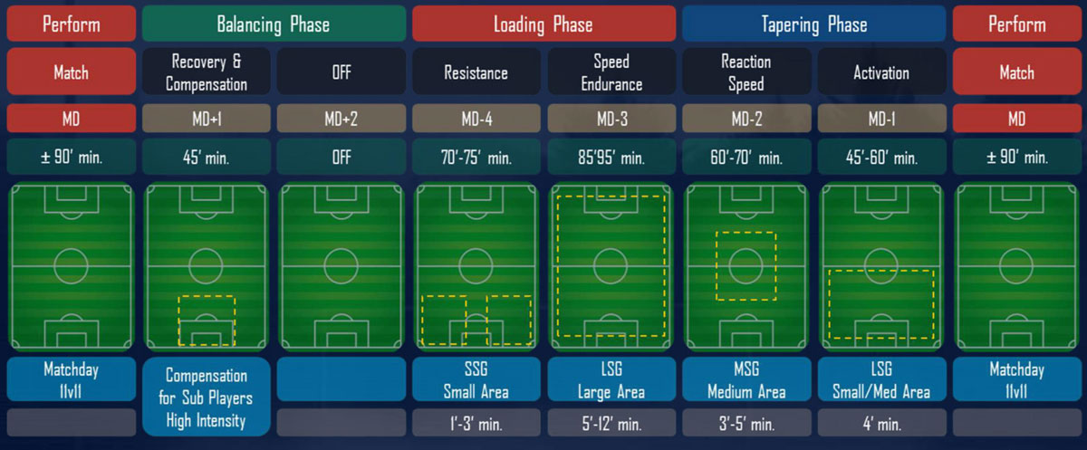 The image presents a preferred microcycle. The microcycle needs to be adjusted based on the Game Model and specific contextual factors